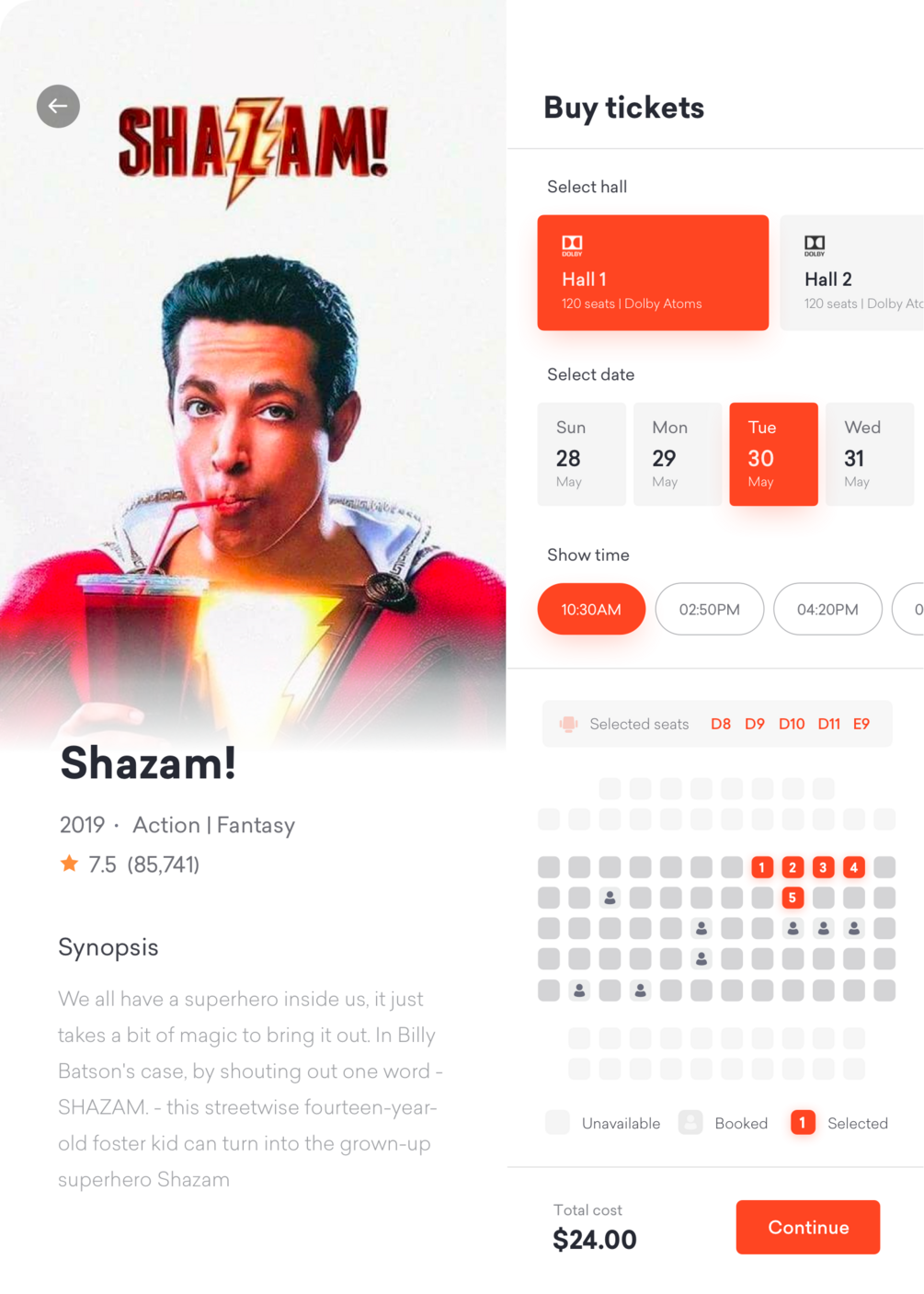 Movie ticket app screen designed for Galaxy Fold with Galaxy fold mockup for FREE. Available for Sketch and Figma